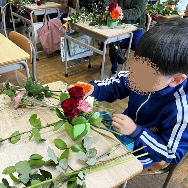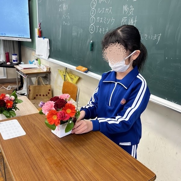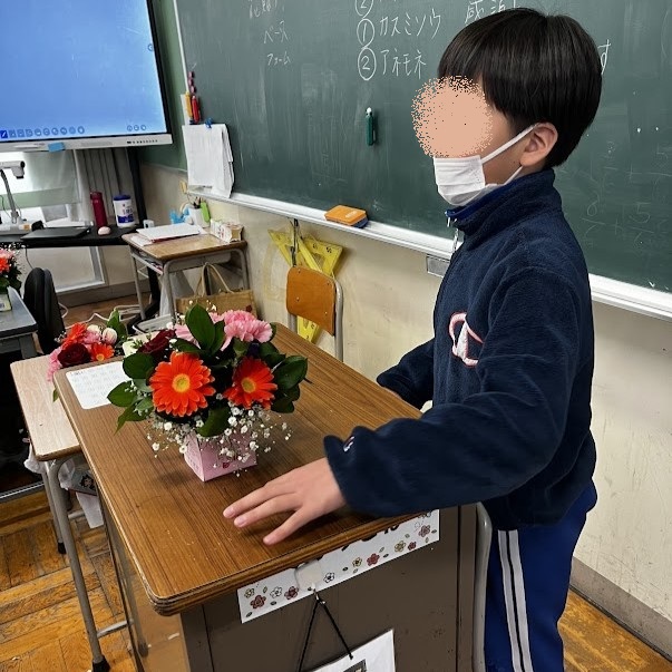 最後は、自分のこだわりポイントを発表し合い、みんなで作品を称え合いました。子供たちの優しい想いが、お花と一緒にご家族に届きますように。