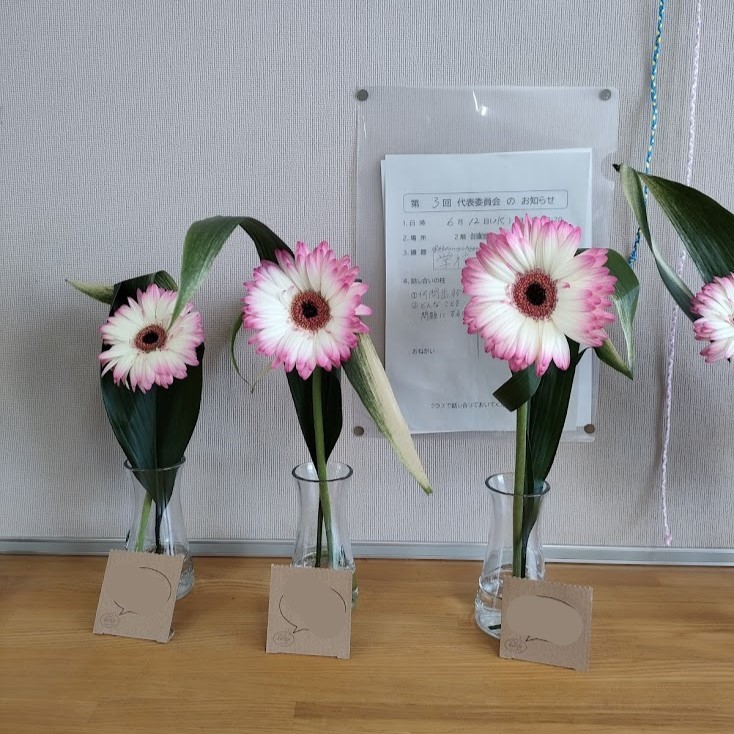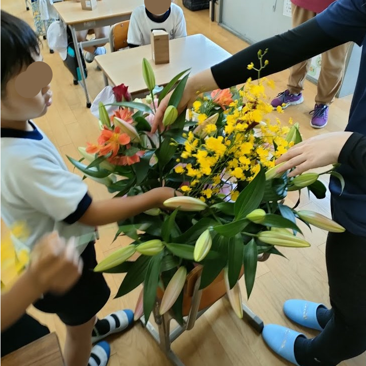 クラスの生け花では保護者の方達にも参加していただいて、素敵なクラスの花が完成しました。