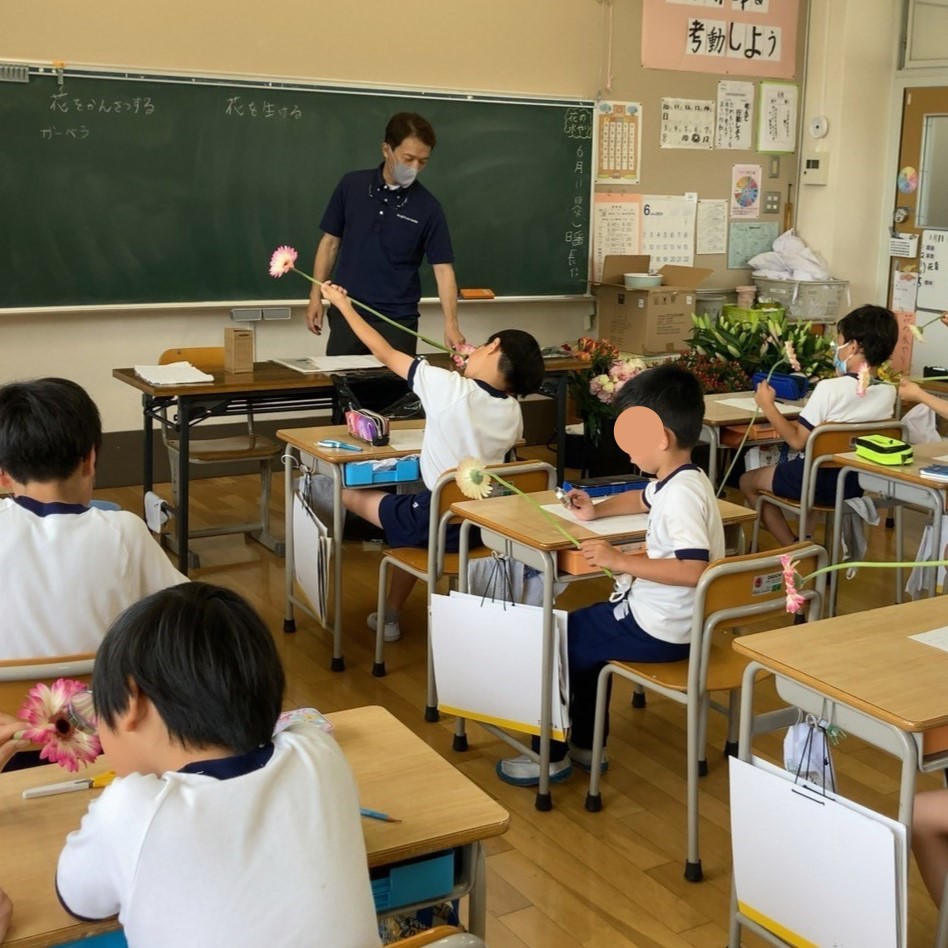 置塩小学校の3年生の児童たちと、一花一葉の花育を実施いたしました。
